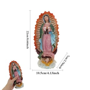 Material: Resina Tamanho do produto: 22* 10,5* 7 cm Peso do produto: 433 g Design da Virgem Maria do Sagrado Coração — Apresenta uma estatueta finamente detalhada da Virgem Maria com as mãos em oração, simbolizando paz, devoção e proteção. Material de resina premium — Feito de resina de alta qualidade, durável e suave, com detalhes pintados à mão que realçam a aparência realista desta escultura religiosa. Estilo religioso tradicional — Feita em estilo católico clássico com auréola radiante e base de anjo, esta estátua traz charme espiritual a qualquer ambiente. Ornamento decorativo versátil — perfeito para uso como retábulo doméstico, enfeite de mesa, decoração de igreja ou escultura de sala de oração. Tamanho compacto e elegante — mede 22 × 10,5 × 7 cm, leve e resistente, ideal para colocar em prateleiras, mesas ou altares sem ocupar muito espaço.