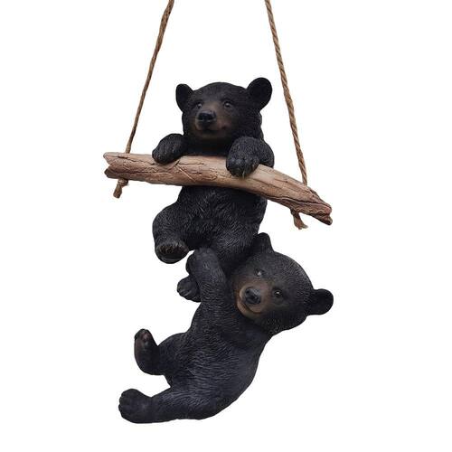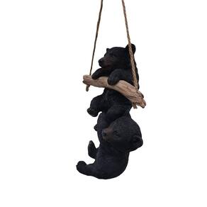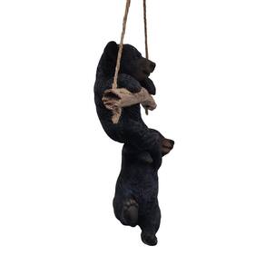 Dueto Hanging Bear Cubs da Hi-Line Gift Ltd.: divertido conjunto de estatuetas de poliresina preta