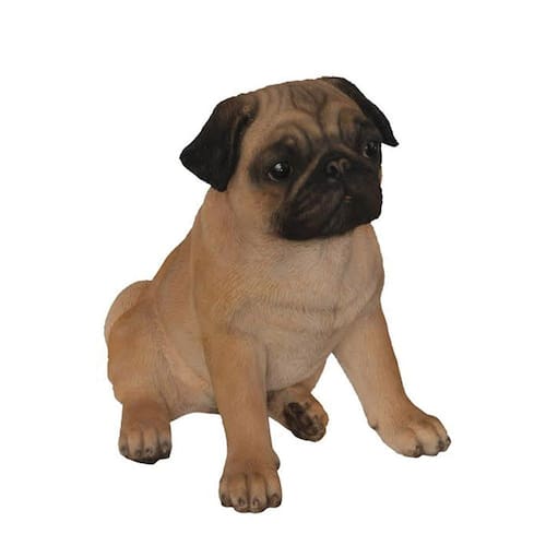 O presente hi-line Ltd. sentado Pug estátua de jardim de cão é uma adorável gêmea para uso interno ou externo. Esta estátua de jardim tem detalhes realistas, incluindo adorável brilhante os olhos e um acabamento bege com detalhes de escuro todo o rosto e ouvidos. Dimensões: 11,5 x x por em 3d.. feito de poliresina e resina. Pintado em preto e Fawn. Altamente detalhada pintura. Ao ar livre ou uso interno.