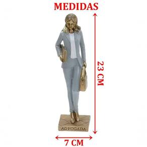 Características Gerais do Produto: - Material: Resina - Modelo: Escultura Advogada - Cor: Branco; Bronze; Cinza - Dimensões aproximadas: Altura 23cm X Largura 7cm X Comprimento 6cm Garantia: - Garantia contra no