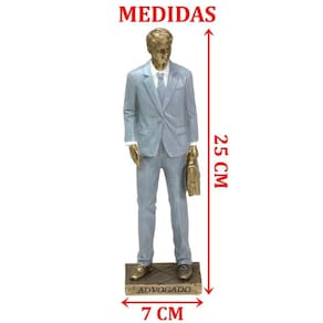 Características Gerais do Produto: - Material: Resina - Modelo: Escultura Advogado - Cor: Branco; Bronze; Cinza - Dimensões aproximadas: Altura 25cm X Largura 7cm X Comprimento 6cm Garantia: - Garantia contra no