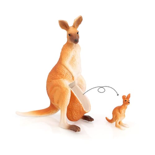 Estatueta realista de canguru para mãe e bebê — Modelo australiano de vida selvagem em PVC com bebê canguru removível, perfeita para crianças, brinquedos educativos e decorações domésticas Descrição: Material: PVC Tamanho: 8,2 x 3,7 x 11 cm Peso: 58 g Características: mãe e bebê canguru realistas — Esta estatueta apresenta uma mãe canguru detalhada com um bebê removível, projetada para mostrar o vínculo entre eles em um maneira realista. Material de PVC durável — Feita de PVC não tóxico de alta qualidade, esta estatueta de canguru é segura para crianças de 3 anos ou mais, tornando-a perfeita para brincadeiras educacionais e uso duradouro. Brinquedo educacional para a vida selvagem — Uma ferramenta fantástica para ensinar crianças sobre a vida selvagem australiana, esta estatueta ajuda as crianças a aprender sobre cangurus e, ao mesmo tempo, incentiva brincadeiras criativas. Perfeito para decoração — Este modelo canguru realista é uma bela adição a qualquer casa, sala de aula ou espaço com tema natural, adicionando um toque de charme da vida selvagem à sua decoração. Ótima para colecionadores — Com seu design complexo e cores vibrantes, esta estatueta de canguru é uma excelente adição a qualquer coleção de estatuetas de vida selvagem ou exibição para entusiastas de animais. O que vem na caixa: 1 x Estatueta realista de mãe e bebê canguru