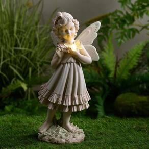 LEDs movidos a energia solar Girl Holding Butterfly Lighted Garden Statue
