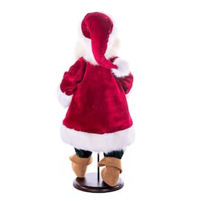 Boneca de Papai Noel de veludo xadrez vermelho Vickerman de 18" com suporte. Este Papai Noel tem óculos, o suporte é removível.