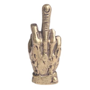 Material: cobre Tamanho: 42 mm Peso: 22 g Escultura exclusiva do dedo médio: uma estatueta divertida e ousada com um gesto vintage de latão no dedo médio, perfeita para adicionar um toque humorístico a qualquer espaço. Enfeite de mesa criativo: ideal para desktops, mesas de estudo ou escritórios, esta escultura é uma peça de conversa peculiar ao mesmo tempo em que adiciona personalidade ao seu espaço de trabalho. Acabamento em latão envelhecido retrô: o acabamento em estilo antigo e o material de latão dão a esta escultura uma aparência atemporal, realçando seu apelo como uma peça ousada. Compacta e elegante: com 1,65 polegadas de altura, esta escultura pequena e impactante se encaixa perfeitamente em qualquer mesa ou prateleira, tornando-a uma adição atraente a qualquer decoração moderna ou eclética. Decoração divertida e irreverente: este enfeite de gestos com o dedo médio serve como uma peça decorativa divertida e rebelde, ideal para quem tem um senso de humor único.