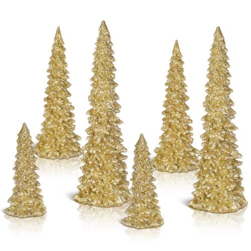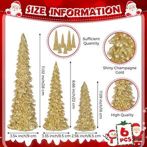 Características: Essas estatuetas de árvores de Natal de mesa são brilhantes com pó dourado, o que ajuda a adicionar um toque de brilho e brilho ao seu quarto. Nenhuma manutenção é necessária para nossas pequenas árvores de Natal para mesa, porque elas não são propensas a deixar sujeira para trás e podem economizar tempo e energia e diminuir a carga de trabalho de limpeza. Especificações: Material: resina Cor: ouro champanhe Tamanho: Altura: cerca de 11,02 polegadas/28 cm, 8,66 polegadas/22 cm, 7,09 polegadas/18 cm Diâmetro inferior: cerca de 3,54 polegadas/9 cm, 3,35 polegadas/8,5 cm, 2,56 polegadas/6,5 cm O pacote inclui: 6 estatuetas de decoração de mesa de Natal Notas: Medição manual, permita pequenos erros de tamanho. A cor pode ter uma pequena diferença devido às diferentes exibições na tela. - Quantidade suficiente: você receberá 6 peças de pequenas árvores de Natal decorativas em uma elegante cor dourada champanhe, 2 peças de cada tamanho, sua aparência requintada pode atender às suas diversas necessidades decorativas e sua quantidade é adequada para você utilizar e substituir em sua vida diária. - Material de qualidade: nossas estatuetas de árvore de Natal são feitas de resina, que é resistente à abrasão e à água, não é fácil de desbotar ou arranhar, e são lisas superfície por meio de procedimentos pintados à mão e polidos e pode atendê-lo por um período consideravelmente longo período - Informações de tamanho: o tamanho da árvore de Natal em ouro champanhe é de cerca de 11,02 polegadas, 8,66 polegadas, 7,09 polegadas de altura, cerca de 3,54 polegadas, 3,35 polegadas e 2,56 polegadas de diâmetro inferior, o que pode facilmente atender às suas necessidades de adorno ao decorar o festival de Natal, proporcionando um valor estético suficiente e pelo qual você pode utilizá-las com uma experiência deliciosa - Versátil: você pode aplicar essas árvores de Natal decorativas estatuetas para decorar seu quarto, sala de estar, mesa de cozinha, restaurante, bar, cafeteria e assim por diante, além de serem utilizadas como enfeites, elas também podem ser usadas como adornos fotográficos encantadores para iluminar suas selfies. Seleção ideal de presentes: nossas pequenas estatuetas de decoração de árvore de Natal são presentes deliciosos para seus entes queridos, amigos, familiares, colegas de trabalho e outras pessoas com quem você tem intimidade e podem ser dadas no dia de Natal e em outros dias visivelmente importantes. Além disso, também podem ser aplicadas como um presente gratificante para você
