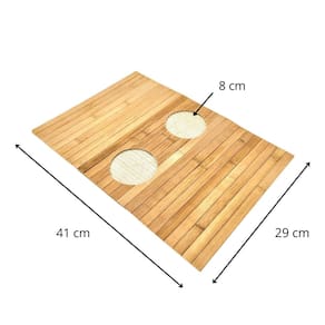 Confeccionada 100% em bambu, um material natural, sustentável e renovável, essa esteira se destaca por suas qualidades ecológicas e sua durabilidade. O bambu, conhecido por sua leveza e resistência, traz um charme rústico e uma sensação de aconchego, integrando elementos da natureza à sua decoração. Seus dois porta-copos, com 8,5 cm de diâmetro cada, oferecem conveniência e segurança para suas bebidas, evitando derramamentos e mantendo o espaço organizado.