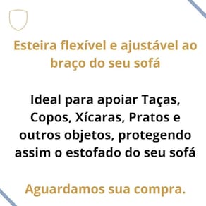 Nossa esteira flexível lhe proporcionará proteção para seu sofá contra manchas de taças, copos e xícaras e um apoio para utensílios. Tudo isso com extrema qualidade e bom gosto. Seu ambiente fica ainda mais elegante e prático