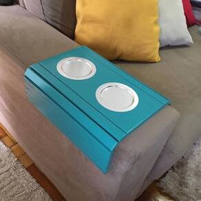 Esteira Bandeja para braço de sofá com portas copos em alumínio de alta qualidade, Pintura 100% laqueada, ótimo para apoiar braço de sofás Pratos ou notebooks e outros objetos dando ar requinte ao ambiente, produto 100% MDF alta qualidade.