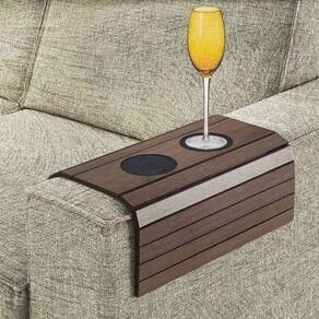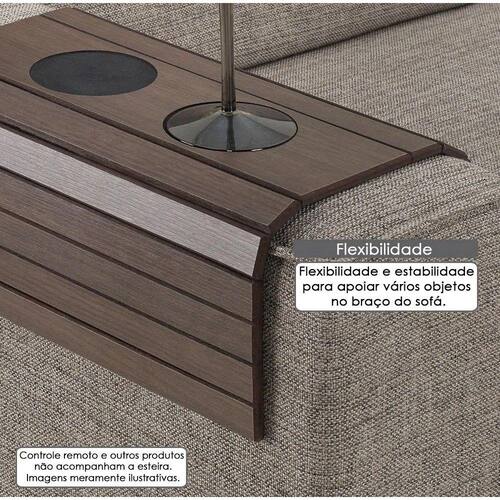 A esteira ou bandeja para braço de sofá é formada por ripas de MDF, material de ótima qualidade. Deve ser utilizado para apoiar notebooks, copos, pratos e pequenos objetos com bastante estabilidade.