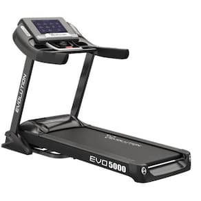 A EVO 5000 vem com um painel de 15,6 Touch Screen com sistema Bluetooth e autofalantes, e 12 programas de treino pré-setados. A aferição dos batimentos cardíacos é feita via hand pulse e o equipamento possui 3 porta-objetos para sua conveniência.