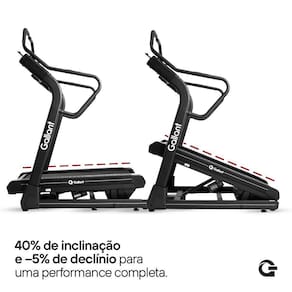 1. O que significa inclinação de 40% e declinação de -5%? Significa que o equipamento simula subidas com mais inclinação que as esteiras convencionais e descidas reais, aumentando o desafio do treino e potencializando o fortalecimento muscular e o condicionamento cardíaco.