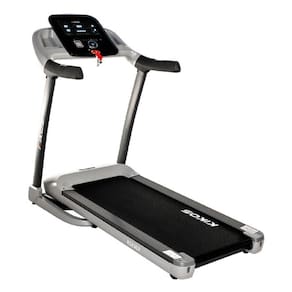 Display em LED azul (velocidade, distância, cronômetro, monitoramento cardíaco e calorias), possui velocidade 01-16 km/h, motor 2.5 HP DC (Peak Power), 3 programas de treinamento, 00-18% de nível de inclinação eletrônico e 2 porta-objetos. Produto na cor cinza, projetada para usuários com até 120 kg e altura máxima 1,90 m.