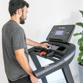Pensada para o uso residencial e para trazer mais conforto e praticidade para seus treinos, a SH4.5 é dobrável e possui rodinhas para facilitar a movimentação. Além disso, ela conta com um sistema de amortecimento que une molas e elastômeros para uma maior absorção do impacto e possui inclinação eletrônica para aumentar seu desafio durante os treinos.