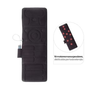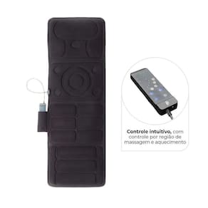 Esteira Massageadora DellamedA Esteira Massageadora possui 10 motores que oferecem uma massagem completa, podendo ser utilizada em camas, sofás e poltronas. Possui controle integrado e intuitivo que regula os níveis e tipos de massagem, bem como aquecimento. Sua estrutura é compacta e leve, possibilitando o transporte e armazenamento em qualquer lugar. Especificações Técnicas:20W de potência;Peso do produto: 1,4 Kg;Dimensões do produto: Largura: 54 cm Comprimento: 153 cm Espessura: 2 cm;Bivolt;Feito em poliéster e espuma;3 níveis de controle de intensidade; 10 motores massageadores.Características:Possibilita massagem todo corpo;Produto dobrável de fácil transporte e de fácil maleabilidade;Com bolso lateral para armazenamento do controle;Produto dobrável de fácil transporte;5 modos diferentes de massagem;Possui opção de aquecimento;Ideal para ser utilizada em camas, sofás e poltronas;Desligamento automático.Conteúdo da Embalagem:1 Esteira Massageadora;1 Controle.Garantia:12 meses, sendo 03 meses de garantia legal e 09 meses adicionais.