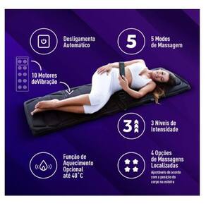 Conta com um funcionamento de até 20 minutos. Use o controle remoto para selecionar os 5 programas automáticos de massagem e os 10 motores vibratórios, desenvolvidos para um relaxamento completo do corpo.