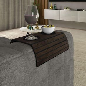 Esteira bandeja flexível para braço de sofá com porta copos .