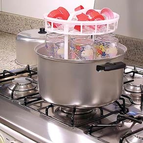 O Esterelizador de Mamadeiras Lenox proporciona um método exclusivo de esterilização a vapor em um conjunto em alumínio, que deve ser utilizado exclusivamente em fogão a gás, com capacidade para 7 mamadeiras (vendidas separadamente) em sua cesta plástica.
