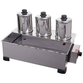 Os esterilizadores foram desenvolvidos para agilizar o atendimento no balcão dos bares, padarias, restaurantes, lanchonetes e serviços de alimentação em geral. São ideais para servir com comodidade bebidas quentes como café, leite, achocolatados e chás. Corpo em aço inoxidável 430 reforçado; Bule Tradicional estampado em aço 304. material indicado para o contato com alimentos e bebidas ; Resistência tubular em inox blindada; Pés de borracha antiderrapante; Termostato regulável de 20ºC a 120ºC; Ideal para servir e manter quente café, leite, chás e achocolatado; Indicados para bares, padarias, restaurantes, cafeterias, lanchonetes e serviços de alimentação em geral. Modelo: ES.1.391/392 Capacidade: 3 Bules 1,8 litros cada; Consumo: 750w / 0,75 kw/h; Alimentação: 127v ou 220v; Medidas do Produto CxAxL : 52 x 30 x 31 cm; Medidas da Embalagem CxAxL : 53 x 33 x 42 cm; Peso Líquido: 3,4 kg; Peso Bruto: 4,2 kg. Ean: 7898131061136