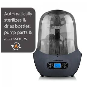 Facilite a esterilização e secagem de mamadeiras, peças de bomba e acessórios com o secador esterilizador de uma etapa Baby Brezza. Em uma única etapa, você pode esterilizar e secar automaticamente até 6 mamadeiras, peças de bomba, chupetas e muito mais de qualquer marca. A máquina usa vapor natural para esterilizar com eficácia e depois seca com ar quente. Você pode usar o painel de controle LCD para selecionar entre quatro funções: Secador de Esterilizador, Somente Esterilizador, Somente Secador ou Rack de zenamento e três tempos de secagem: 30 min, 45 min, 60 min. Os produtos permanecem estéreis no interior por até 24 horas até que a tampa seja aberta. O Secador Esterilizador possui uma placa de aquecimento de aço inoxidável que protege contra ferrugem e acúmulo de água dura. Esteriliza automaticamente mamadeiras secas, peças de bomba tira leite, chupetas, mordedores, copinhos, brinquedos e outros acessórios em uma etapa fácil, economizando seu tempo. Agora disponível na cor carvão Usa vapor natural para esterilizar com eficácia e, em seguida, seca automaticamente com configurações de temporizador de 30, 45 ou 60 minutos à sua escolha Grande capacidade e universal comporta até 6 garrafas, peças de bomba e acessórios e funciona com todas as marcas de tamanhos 4 pol. 1 funcionalidade Use como esterilizador Secador, somente esterilizador, somente secador ou sistema de guardar Os produtos permanecem estéreis por até 24 horas quando deixados no esterilizador fechado Marca: Não Informado