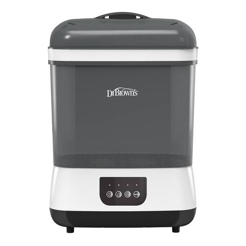 — Limpe a vapor, seque, armazene e muito mais! O esterilizador e secador de garrafas a vapor Dr. Brown's Clean oferece o pacote completo. Esterilize a vapor e seque até seis mamadeiras ao mesmo tempo, além de peças de extrator de leite, chupetas e mordedores.