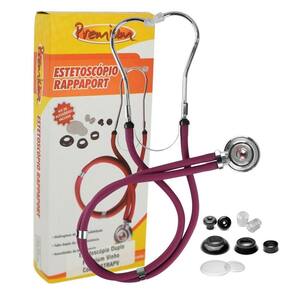 O Estetoscópio Rappaport Premium é indicado para a ausculta cárdio-respiratória não invasiva do organismo. Ele é completo com tubo duplo para ausculta mais precisa e inclui olivas e diafragmas para conversão em diferentes formas de uso. É um aparelho de uso médico que requer treinamento e prática para o uso correto.