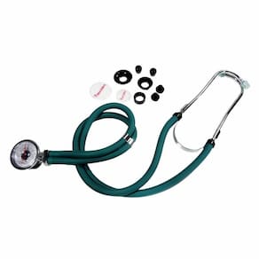 O Estetoscópio Rapport da Supermedy é indicado para a ausculta cardio pulmonar não invasiva do organismo. Com design avançado, este é um estetoscópio completo, com auscultador de aço inox para uma ausculta, mais precisa e eficiente, com tubo em Y flexíveis em PVC colorido de peça única para melhor transmissão do som, com fone biauricular, que permite auscultar simultaneamente o som. Possui par de olivas macias e diafragma de alta sensibilidade. Possui cinco tipos diferentes de auscultadores.Tipo de auscultador fechado com uma membrana de plástico rígido(diafragma)grande e pequeno: Uso Infantil. Tipo Aberto (sino prolongador) grande e pequeno.Design avançado com baixo pesoTubo Y flexíveis em PVC coloridoFone biauricularPar de olivas maciasClips de aço inoxidávelCom ângulo anatômicoAuscultação sensível e precisaProduzido com materiais de alta qualidadePossui cinco tipos diferentes de auscultadoresInclui um Kit de acessórios com olivas e membranasOlivas e Diafragmas para conversão em diferentes formas de usoTubo Duplo para ausculta mais precisa Com registro na ANVISA Medidas aproximadas : 694,5x2cmPeso aproximado do produto: 0,650Kg