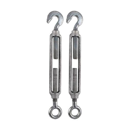 Esticador Para Cabos De Aço De Espessura Ate 1 pol. 25,4 MM , Corpo Em Ferro Maleável Galvanizado Com Terminais Gancho E Olhal Em Ferro Galvanizado. 2 Unidades Indicado para tensionar esticar cabos de aço e cordoalhas. Não deve ser utilizado em aplicações de movimentação de cargas. Marca: Starfer Ref.: 05057078