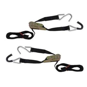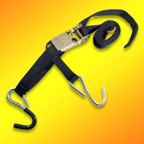 Cinta com catraca de 25mm de largura e com 1,80 metros de comprimento e gancho tipo S nas extremidades para amarração de cargas em geral.