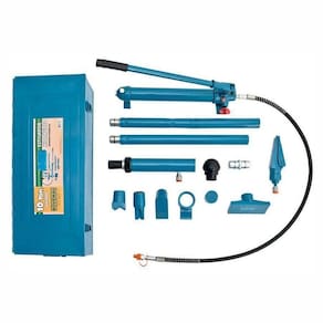 - Capacidade : 10 Ton - Altura de construção de cilindro hidráulico : 322 mm - Elevação hidráulica : 125 mm - Comprimento total da mangueira : 1520 mm - Comprimento total da bomba : 560 mm - Comprimento total da alavanca : 480 mm - Alongador : 110 mm - Alongador : 265 mm - Alongador : 365 mm - Alongador : 520 mm - Curso mínimo da cunha hidráulica : 17 mm - Curso máximo da cunha hidráulica : 85 mm - Peso : 29,5 Kg - Projetado para realizar trabalhos de funilaria em geral - É composto de acessórios que facilitam o trabalho do dia a dia - Possui cunha para lugares de difícil acesso - Possui 4 alongadores aumentando muito mais a faixa de trabalho