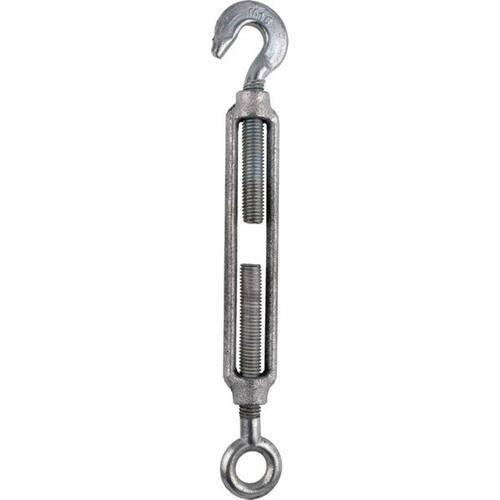 Esticador Para Cabos De Aço De Espessura Ate 1 pol. 25,4 MM , Corpo Em Ferro Maleável Galvanizado Com Terminais Gancho E Olhal Em Ferro Galvanizado. Indicado para tensionar esticar cabos de aço e cordoalhas. Não deve ser utilizado em aplicações de movimentação de cargas.