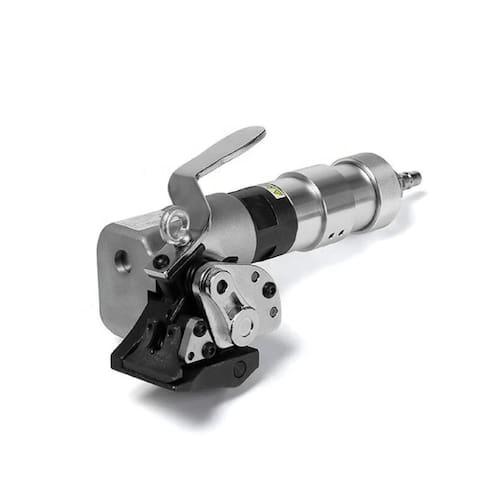A principal característica de um esticador pneumático é o uso de ar comprimido para aplicar a força necessária para tensionar a fita de aço. Isso é feito de forma controlada e consistente, garantindo que a fita fique adequadamente tensionada antes de ser selada.