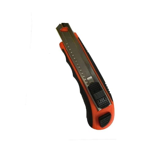 Estilete 18mm 8 Lâminas A06020 - Ajax - O estilete retrátil com lâmina de 18mm ajax conta com seu corpo em borracha e guia em plástico. Produto ideal para trabalhos em papel, papelão e outros tipos de materiais.Características Gerais do Produto: Peso Gr : 400 Dimensões: 5X10X15Garantia: 6 meses