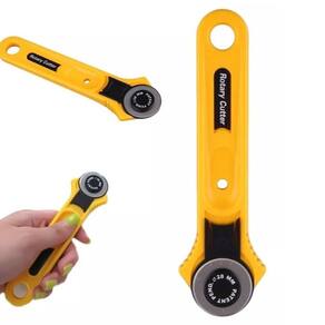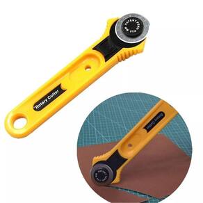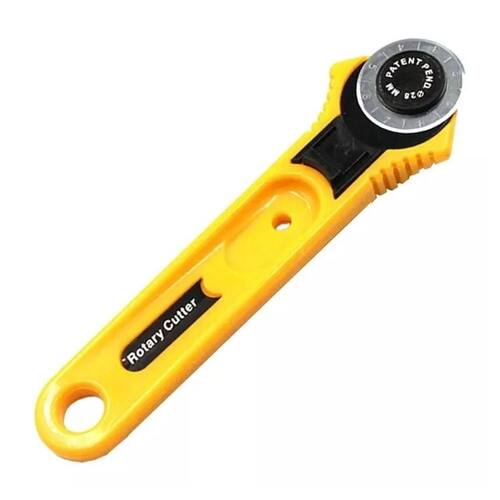 cortador rotativo 28mm com cabo plástico e lâmina de aço, fácil de utilizar e com corte preciso. Ideal para tecidos, couro, papel e vinil. Pode se utilizado por destros e canhotos, sem a necessidade de ajuste no cortador. Possui trava para recuar a lâmina quando não estiver mais usando o que garante uma maior segurança. Perfeito para quem busca agilidade e precisão em seus trabalhos. Manuseie com cuidado. Lâmina muito afiada. Composição: plástico e aço