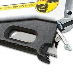 Este estilete mantém a lâmina seguramente retraída, quando não está em uso, se bem que torna à posição de uso instantâneamente, simplesmente soltando a trava de segurança e pressionando a alavanca contra o corpo do estilete. A profundidade de corte é fácil e precisamente ajustada através de uma porca controlada pelo polegar; O cabo possibilita uma troca rápida de lâminas e seu armazenamento de maneira rápida, segura e sem necessidade de qualquer ferramenta - você não tem que largar o estilete para trocar a lâmina; Precisão de corte e alta resistência; Armazenamento de lâminas no próprio estilete; Seguro, fácil de usar e rápida da lâmina; Mecanismo de segurança automático.