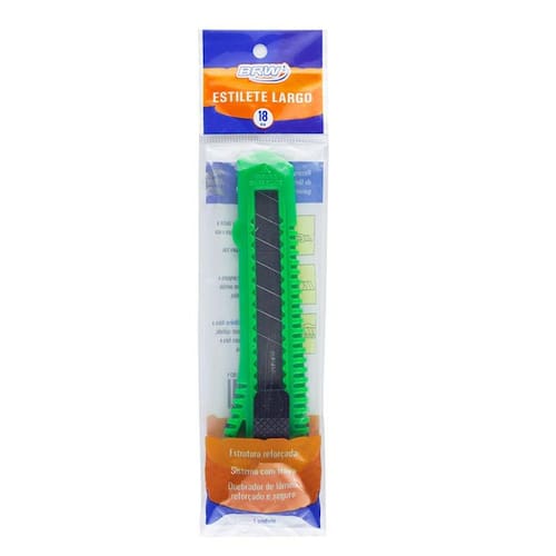 Estilete com excelente precisão no corte com qualidade e total segurança, trava deslizante, lâmina de aço extensível interna.
