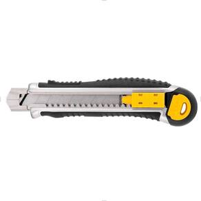 Possui corpo metálico reforçado revestido com borracha termoplástica que confere maior conforto para o operador. Conta ainda com botão de ajuste com sistema de travamento automático da lâmina, que proporciona melhor manuseio, sistema de reposição automática das lâminas para maior comodidade e compartimento para 5 lâminas. Indicado para fazer cortes em geral.