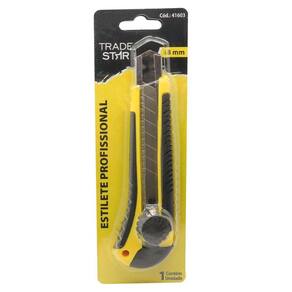 Estilete Profissional 18mm com Trava Emborrachado TradestarO Estilete Profissional 18mm com Trava Emborrachado Tradestar é a escolha ideal para quem busca qualidade e desempenho em suas tarefas de corte.Com a marca Tradestar, você pode confiar em uma ferramenta de alta qualidade. Este estilete possui uma lâmina afiada de 18mm que permite cortes precisos em uma ampla variedade de materiais, desde papel e papelão até tecido e plástico.Sua versatilidade o torna indispensável para artesãos, profissionais e entusiastas do DIY.O cabo emborrachado oferece um agarre confortável e seguro durante o uso, proporcionando maior controle e reduzindo a fadiga das mãos.Além disso, conta com um mecanismo de trava confiável, garantindo sua segurança quando não estiver em uso.O Estilete Profissional 18mm com Trava Emborrachado Tradestar é projetado para resistir ao uso intensivo e durar por muito tempo.Sua construção robusta e durável garante um desempenho consistente em todas as suas atividades de corte.Invista no Estilete Profissional 18mm com Trava Emborrachado Tradestar e desfrute da praticidade e eficiência em suas tarefas de corte. Adquira o seu agora e experimente a qualidade superior da marca Tradestar.DETALHES IMPORTANTESConfira algumas vantagens de comprar com a JJC FERRAMENTAS:Garantia 90 dias após a compra.Imagens meramente ilustrativasAs tonalidades da cor do produto podem sofrer alterações de acordo com a tela que estiver usando para visualização. Marca: Tradestar