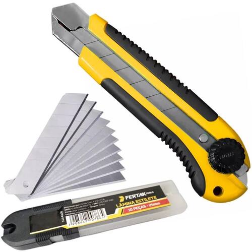 Estilete Profissional 25Mm Com Trava Giratória + 10 Lâminas