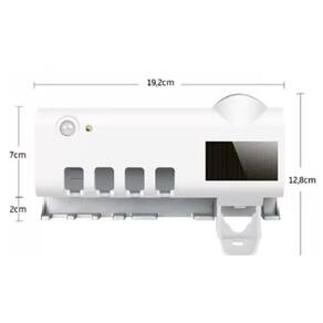 Estilo em branco: porta escova de dentes esterilizador ultravioleta dispenser em destaque. o esterilizador de escova de dente é um porta-escova multifuncional inteligente que limpa E protege sua região bucal. quando você não estiver usando a escova de dentes, esterilize a mesma. o sistema de sensor infravermelho inteligente é ativado quando uma pessoa se aproxima e esteriliza depois que A pessoa sai. o esterilizador de escova de dentes possui um sistema de carregamento solar que não requer luz Solar direta e pode ser carregado quando exposto à luz. armazenamento de energia da bateria de lítio, economia de energia e proteção ambiental. livre-se completamente das das tomadas. nenhuma fonte de alimentação externa é necessária pode-se usar cabo usb , tornando o ambiente do banheiro Bonito. luz ultravioleta + fotocatalisador esterilizador de escova de dente. é um porta-escova multifuncional inteligente que limpa e protege sua região bucal. Características do produto: - porta escova de dentes com esterelizador uv - empremedor de pasta de dentes - lâmpada de led germicida de onda curta - esterelização em 6 minutos - tamanho: alt:12cm x larg:5cm x comp:19cm - peso aproximado: 250g - entrada: dc5v - voltagem: dc3.7v - capacidade bateria: 1200mah - placa de energia solar Marca: Não Informado