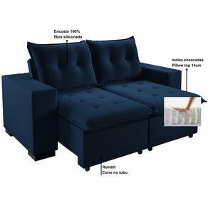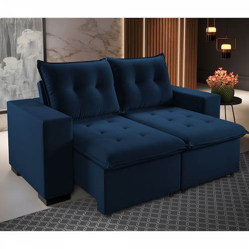 - Possui Borda de PVC nas Bordas?: Não - Possui Pés?: Sim - Possui Sapatas?: Não - Possui Rodízios?: Sim - Possui Tampo?: Não - Possui Puxadores?: Não - Possui Prateleiras?: Não - Sofá-Cama: Não - Pés com regulagem de altura?: Não - Possui Espelho?: Não - Possui Portas?: Não - Categoria: Sofá - Possui Gavetas?: Não - Material da Estrutura: Eucalipto - Espessura da Estrutura: 21 mm - Escala de Brilho: Semi-Brilho - Quantidade de Lugares: 3 - Peso Suportado: 260 kg - Escala de Conforto: Firme - Medidas do Sofá Aberto (A x L x P): A: 109 x L:204 x P:150cm - Como os Móveis Chegarão em Minha Casa?: Desmontado em caixas, acompanhado de todas as peças, ferragens e manuais para montagem. - Grau de Dificuldade de Montagem: Médio - Sistema de Montagem: Parafusos, cavilhas, cola e minifix. - Indicação de Uso: Sala de Estar - Observação: Objetos decorativos que aparecem nas imagens, não acompanham o produto. A capacidade de carga considera que o peso está distribuído igualmente pela peça. As cores das imagens podem variar de acordo com as configurações do seu monitor e/ou da iluminação do ambiente onde o produto está inserido. As imagens indicam uma sugestão - Recomendação de Manutenção: Utilizar pano levemente umedecido, seguido de pano seco. Não utilizar quaisquer produtos abrasivos. - Garantia (dias): 90 Dias - Quantidade de Pés: 4 - Revestimento/Acabamento: Tecido - Tipo do Assento: Retrátil - Tipo de Sofá?: Sofá - Tipo de Encosto: Reclinável - Enchimento do Assento: D-23 - Composição do Tecido: Veludo - Enchimento do Encosto: Fibra Siliconada - Necessita de Montagem: Sim - Pode Ser Montado Invertido?: Não