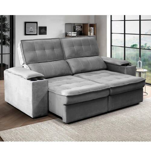 Características do Produto Estrutura: madeira de lei -eucalipto-, devidamente tratada e aparelhada, com reforços de cantoneiras. E chapas em OSB Base : Percintas Elásticas No Encosto, Percintas Elásticas No Assento, Molas Ensacadas e molas espirais Pés: Poliestireno Espumas assento: D23 Espumas Encosto: Fibra siliconadas misturadas com Flocos de espuma Espuma braços: D20 Encosto: Reclinável/ Removível Assento: Retratil