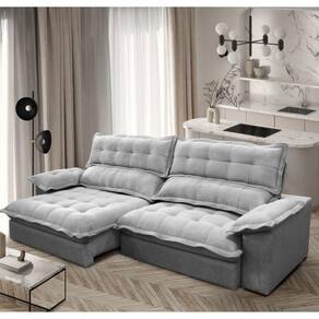 Características do Produto Estrutura: madeira de lei -eucalipto-, devidamente tratada e aparelhada, com reforços de cantoneiras. E chapas em OSB Base : Percintas Elásticas No Encosto , Percintas Elásticas No Assento, Molas Ensacadas e molas espirais Pés: Poliestireno Espumas assento: D-23 Espumas Encosto: Fibra siliconadas misturadas com Flocos de espuma Espuma braços: Fibra siliconadas misturadas com Flocos de espuma Encosto: Reclinável/ Removível Assento: Retrátil