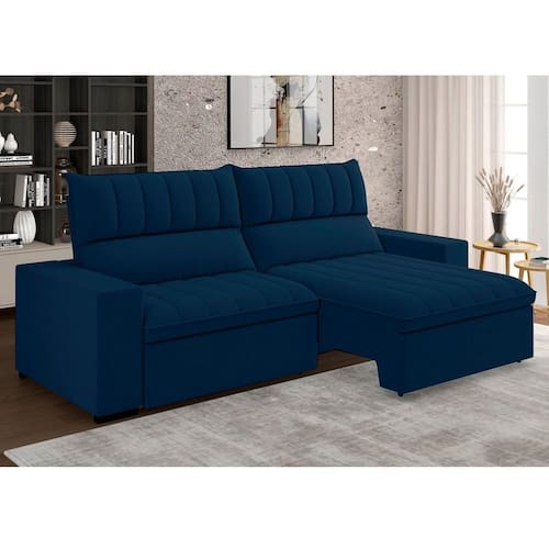 Video demosntrativo. Produto Montado: Sim Acompanha Almofadas extras: Não Almofada do assento: Fixa Almofada do encosto: Fixa Altura do assento até o chão: 49.0000 Altura do Encosto: 63 cm Altura dos Pés: 5 cm Altura Máxima dos Pés: 5.0000 Ambiente Principal: Sala de Estar Bipartida: Não codigo_ean: 7900288095565 Complexidade da Montagem: Baixa: pode ser montado por uma pessoa sozinha Cor: Azul Cor do Produto: Azul Densidade do Assento: D-26 Enchimento do Assento: Espuma Enchimento do Encosto: Fibra Siliconada Estilo de Braço: Braços Quadrados Firmeza do Assento: Médio Itens Inclusos: 1 Sofá, Kit Ferragens e Manual de Montagem Largura do Braço: 21 cm Linha ou Coleção: Coleção Premium Manual de Montagem e Instalação: https://product-hub-prd.madeiramadeira.com.br/982182/documents/498881cc-9d58-4f1f-85ad-c746b64bf89465831742501306982182150429.pdf Marca: Arte Cúbica Estofados Material da Corrediça do Sofá: Aço/Metal Material dos Pés: PVC Montagem Flex: Não Necessita Montagem: Sim Origem do Produto: Nacional Peso: 74 kg Peso Suportado por m²: 110 kg/m² Pet Friendly: Não Porta Copos: Não Possui Baú: Não Possui Entrada USB: Não Possui Mola: Sim Possui Percintas Elásticas: Sim Possui Pés: 05 Possui Rodízio: Sim Profundidade Quando Estendido: 163 cm Profundidade quando extendido: 163.0000 Quantidade de Estágios do Encosto: 3 Quantidade de Molas por Assento: 2 Recomendações de Uso, Manutenção e Limpeza: Não molhar o estofado, não deixar por longas horas exposto ao sol, usar apenas água na limpeza do estofado Revestimento do Braço: Tecido Rodízio com Trava: Não Sistema de Montagem: Parafusos Suporta Até (kg): 110 kg Tecido Predominante: Veludo Tipo de Encosto: Regulável Tipo de Mola: Molas Bonnel Tipo de Sofá: Sofá Comum