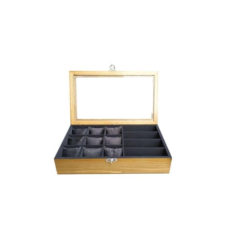 Prático e luxuoso, na linha madeira maciça encontrarmos um toque vintage, objeto decorativo onde são visíveis os veios naturais da madeira. Nossos estojos irão facilitar seu dia a dia com a organização e segurança que sua coleção precisa, além de proporcionar um ambiente mais sofisticado e elegante.Produzida com madeira natural de reflorestamento. Escolhida rigorosamente, tratada com fungicidas e anti-cupins. Envernizada externamente com verniz poliuretano industrial. Para proteção do seu móvel, o fundo deste estojo é forrado com tecido. Internamente as laterais e divisórias são revestidas com nylon aveludado. E as almofadas que acompanham o produto, normalmente são também em tecido aveludado. Na linha madeira maciça é possível observar os veios naturais da madeira. As dobradiças não são aparentes e possuem um limitador. A tampa possui visor com vidro transparente. Acompanha um fecho giratório de pressão em metal, ideal para colocar cadeado. Seus relógios sempre bem protegidos e acomodados confortavelmente, com toda segurança e facilidade no manuseio. Características das caixas para relógio:- Produto fabricado em madeira maciça de qualidade;- Camada Externa de Verniz;- Padrão Imbuia, Flocado Internamente de Preto;- Não empena, não trinca, não racha;- Revestimento interno aveludado, inclusive as divisórias;- Fecho giratório de pressão em metal suporta cadeado - Tampa de vidro 2 milímetros;- Acompanha almofadas para todos os casulos- Medidas aproximadas dos casulos larg x comp x alt : 7,5 x 7,5 x 7,5 cm.Relógios não acompanham o estojo - Imagens meramente ilustrativas
