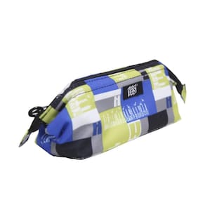 Estojo 1 Zíper Yes Quadrados Verde Estampado ES1805 Estojo com 1 zíper, em alta costura, tecido estampado altamente resistente e moderno, sustentação em metal para completa visualização e manuseio dos objetos com cursores personalizados.