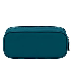 2 compartimentos espaçosos com zíper, facilitando a separação e o acesso aos materiais. Tecido resistente e fácil de limpar, com toque macio e textura diferenciada. Cor petróleo sofisticada e versátil, perfeita para todas as idades. Ideal para armazenar canetas, lápis, marcadores, borrachas, acessórios de escritório, maquiagem e outros pequenos objetos. Compacto e leve, cabe facilmente em mochilas, bolsas ou pastas.