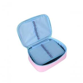 Possui um único compartimento com elásticos e zíper personalizado, garantindo organização prática e fácil acesso aos itens. Seu design é divertido e colorido, tornando o estojo atraente para crianças e proporcionando durabilidade no uso diário.