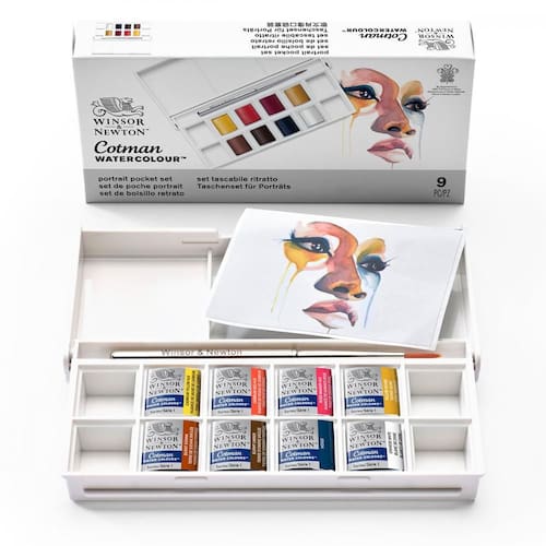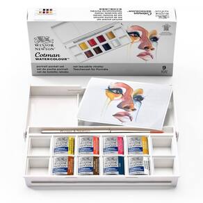Estojo de Aquarela Winsor & Newton Cotman PORTRAIT é composto com uma seleção de cores direcionadas para a pintura de retratos Estojo cuidadosamente desenvolvido para o artista que deseja usufruir do prazer de pintar ao ar livre, transportando facilmente todo o material que necessita. Aquarela com excelente poder nas cores e transparência inigualável. Estojo composto por 8 pastilhas Cotman e 1 Pincel Winsor & Newton acomodados em um lindo e compacto estojo que pode ser utilizado como godê na mistura das cores. Cores do Estojo: Cadmium Yellow Pale Hue Cadmium Red Hue Rose Madder Hue Yellow Ochre Burnt Sienna Burnt Umber Indigo Chinese White