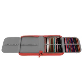 Com um compartimento espaçoso, este estojo permite que você armazene até 74 lápis nos elásticos internos, mantendo-os sempre no lugar e evitando que se percam. Além disso, possui duas abas que podem ser compactadas, otimizando o espaço e permitindo que você guarde ainda mais materiais.